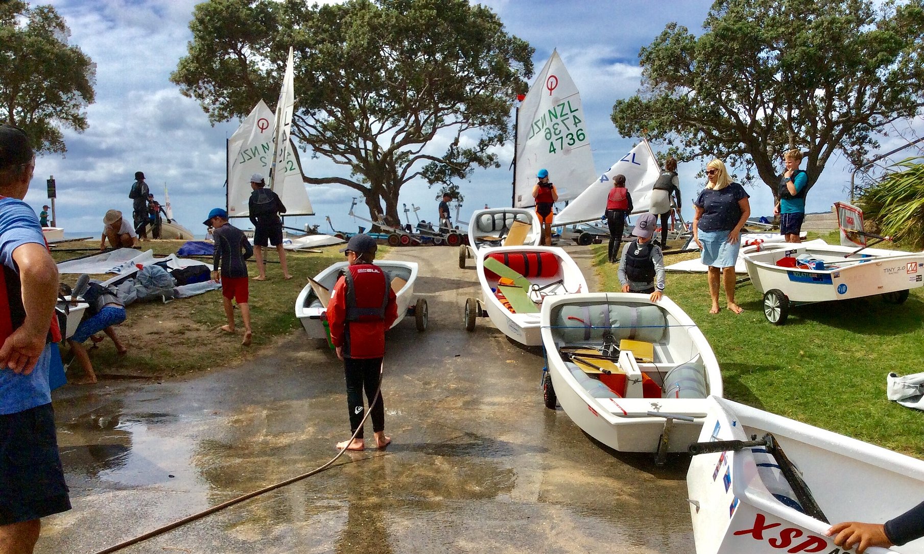Boat storage at Wakatere is reserved for our principal dinghy classes and is available only to current financial members who actively participate in club competition and sailing events. A storage fee applies, and a waiting list is maintained.